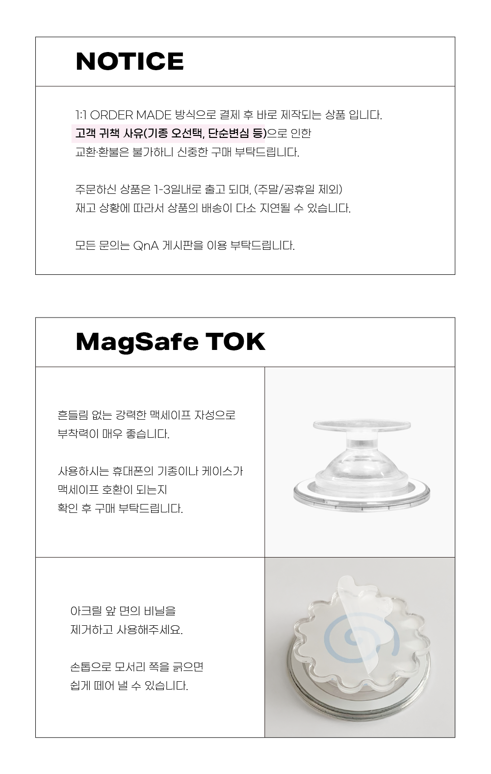 - 반품접수 기한이 지난 경우, 제품 및 패키지 훼손, 사용 흔적이 있는 제품은 교환/반품이 불가합니다.